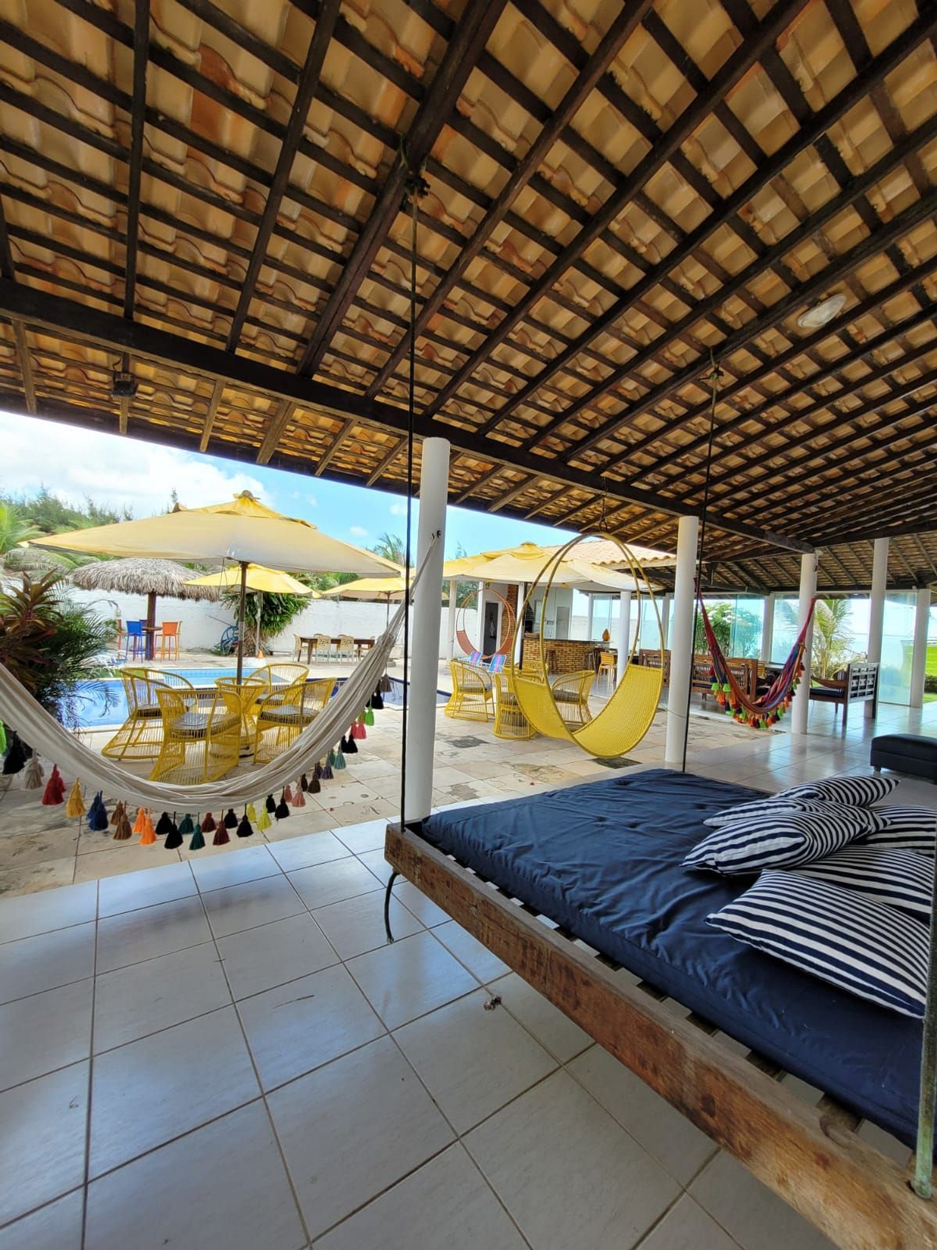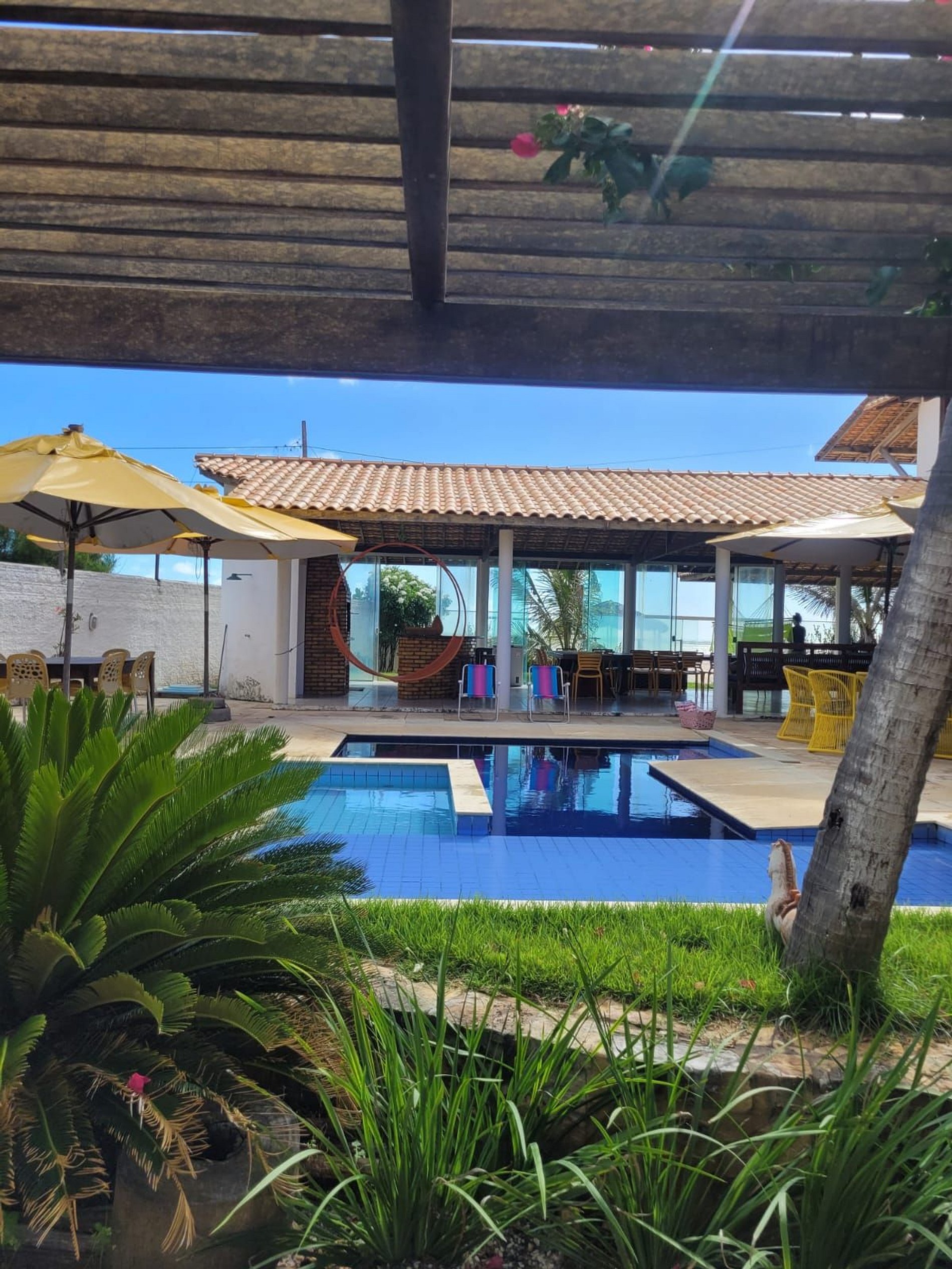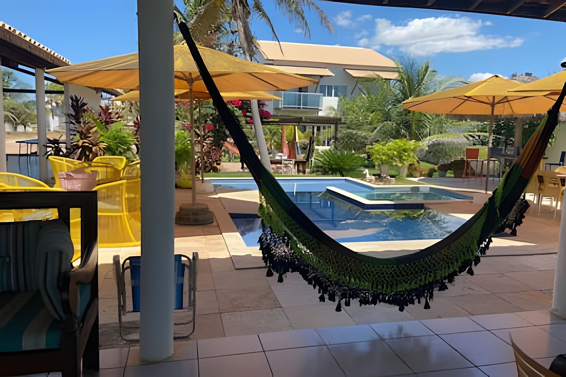 - Piscina com área de apoio com cadeiras e mesas