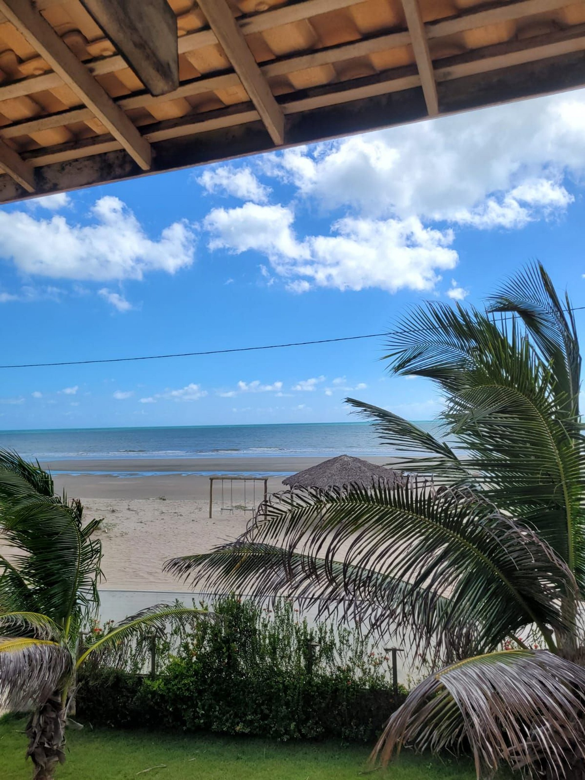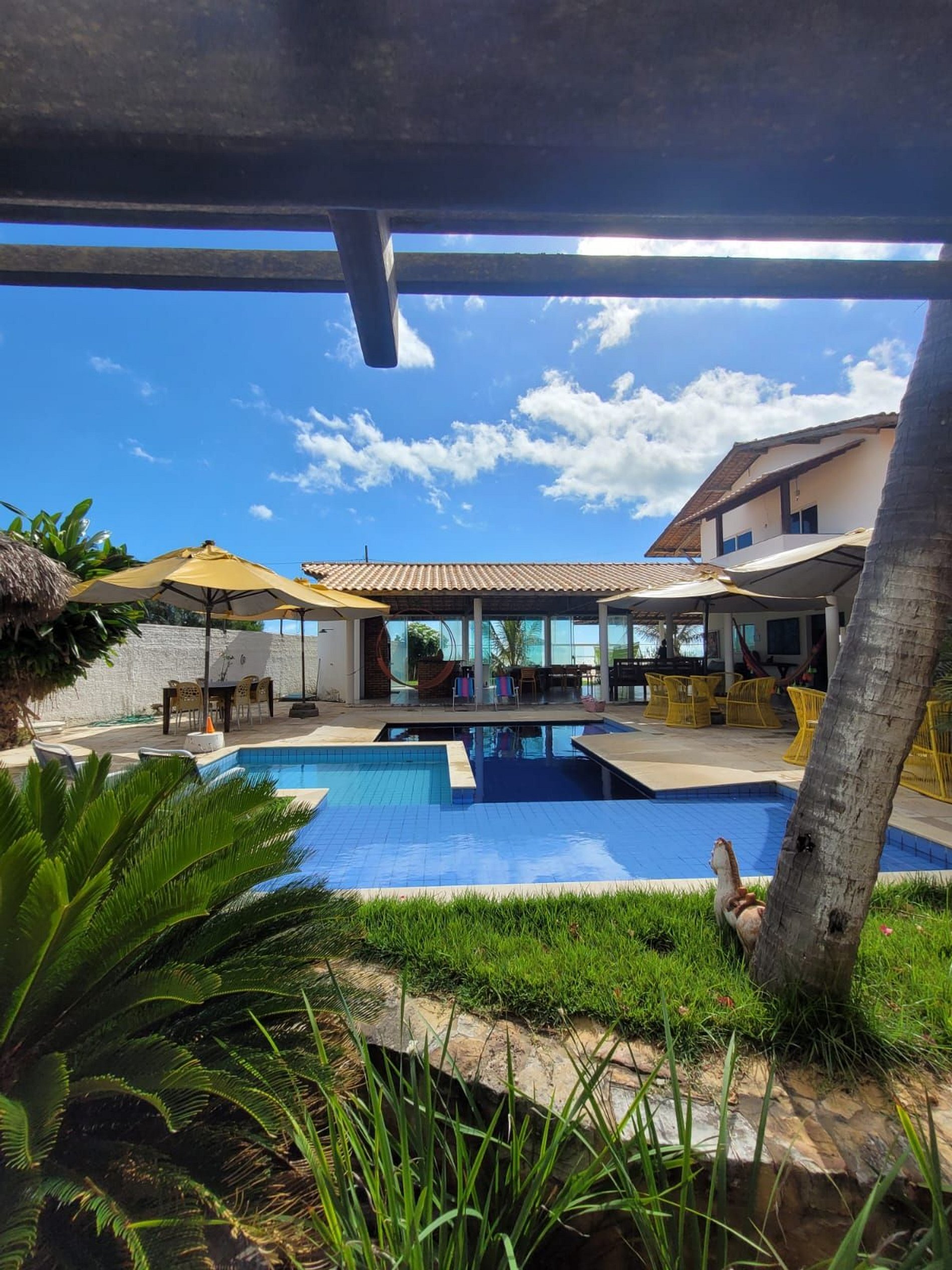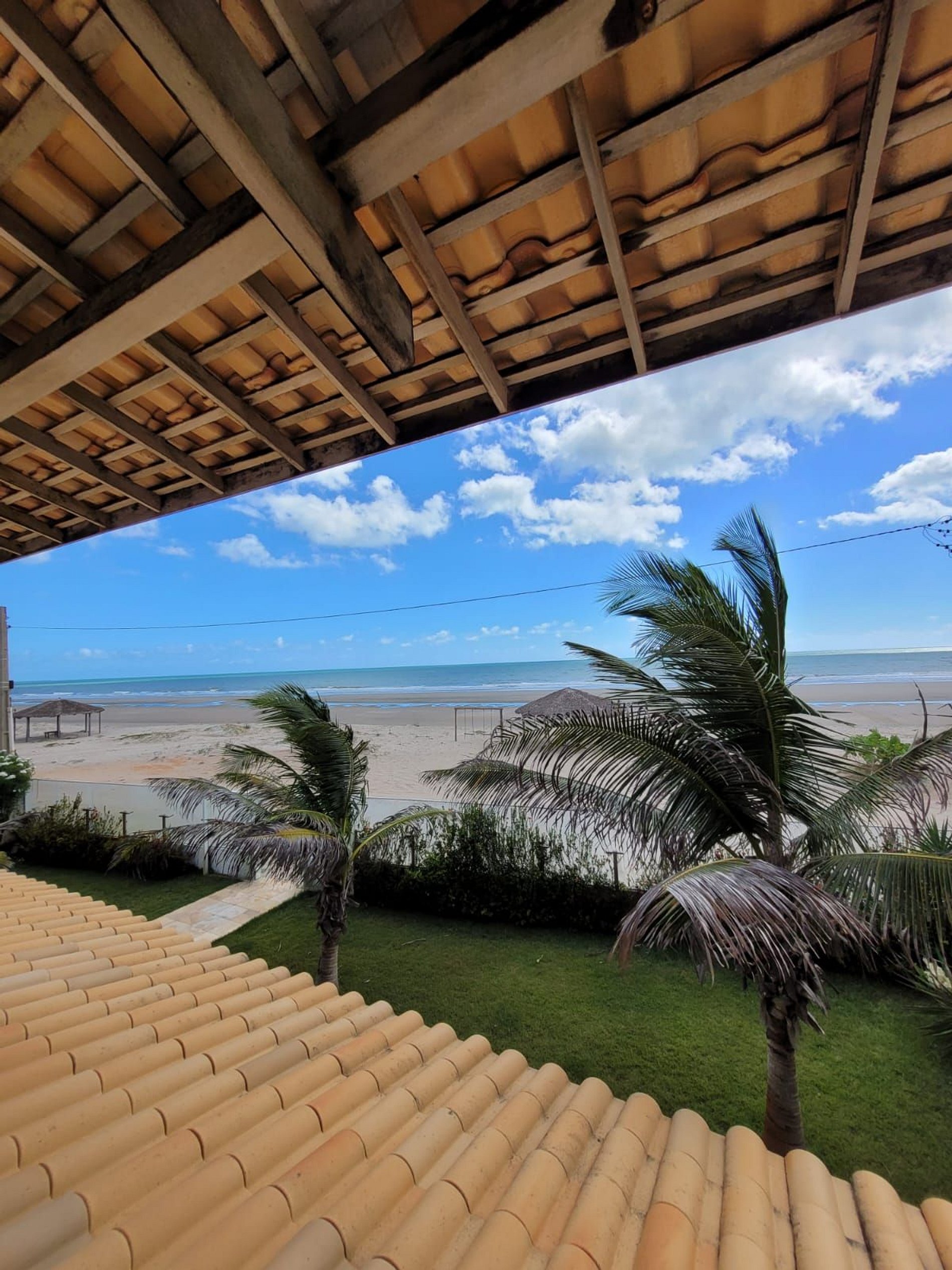 Casa à beira mar, em um terreno amplo, com piscina, churrasqueira, varanda espaçosa com espaços super agradáveis para momentos de interação e descanso. Ainda conta com cozinha completa e equipada e sala de estar com TV.