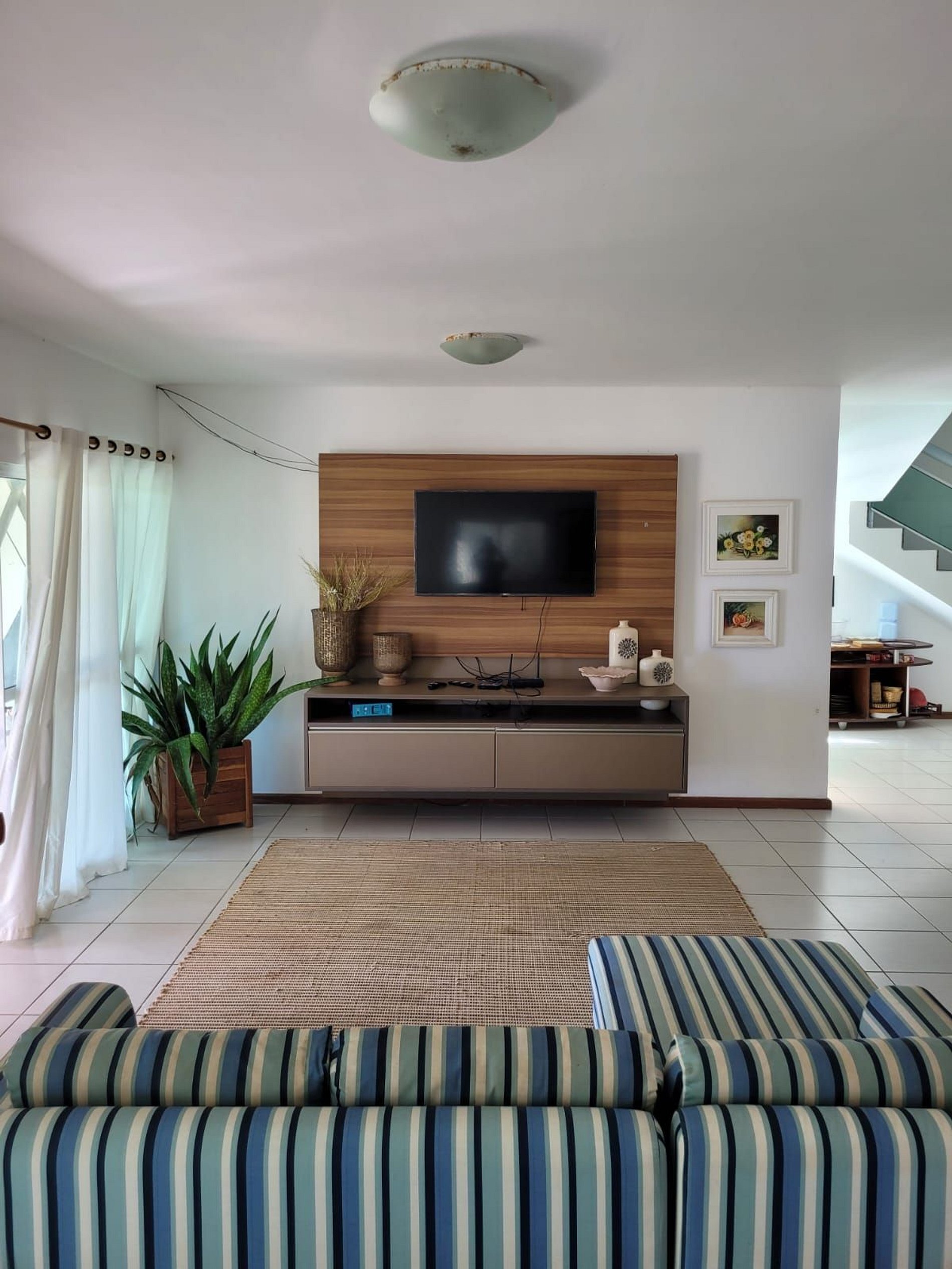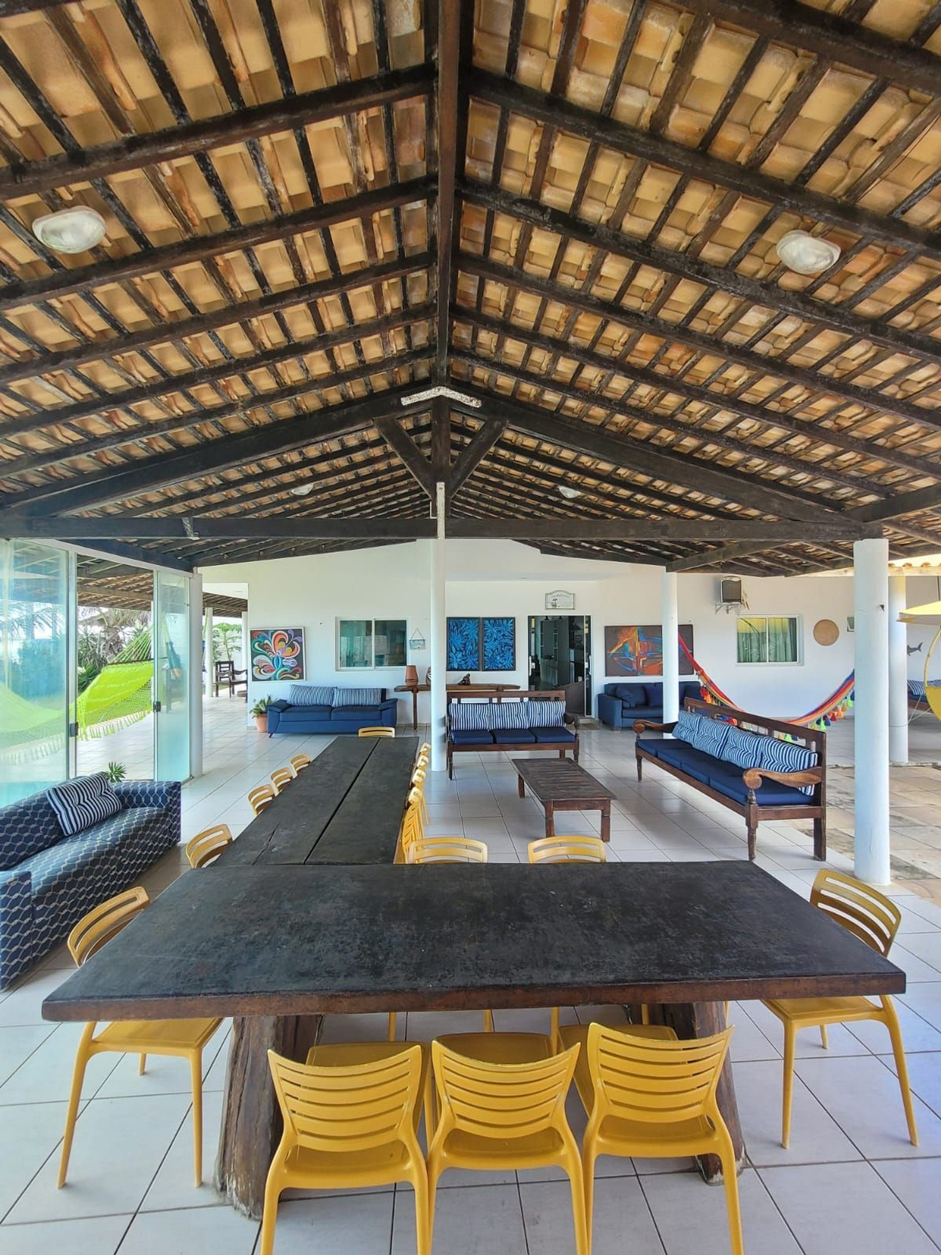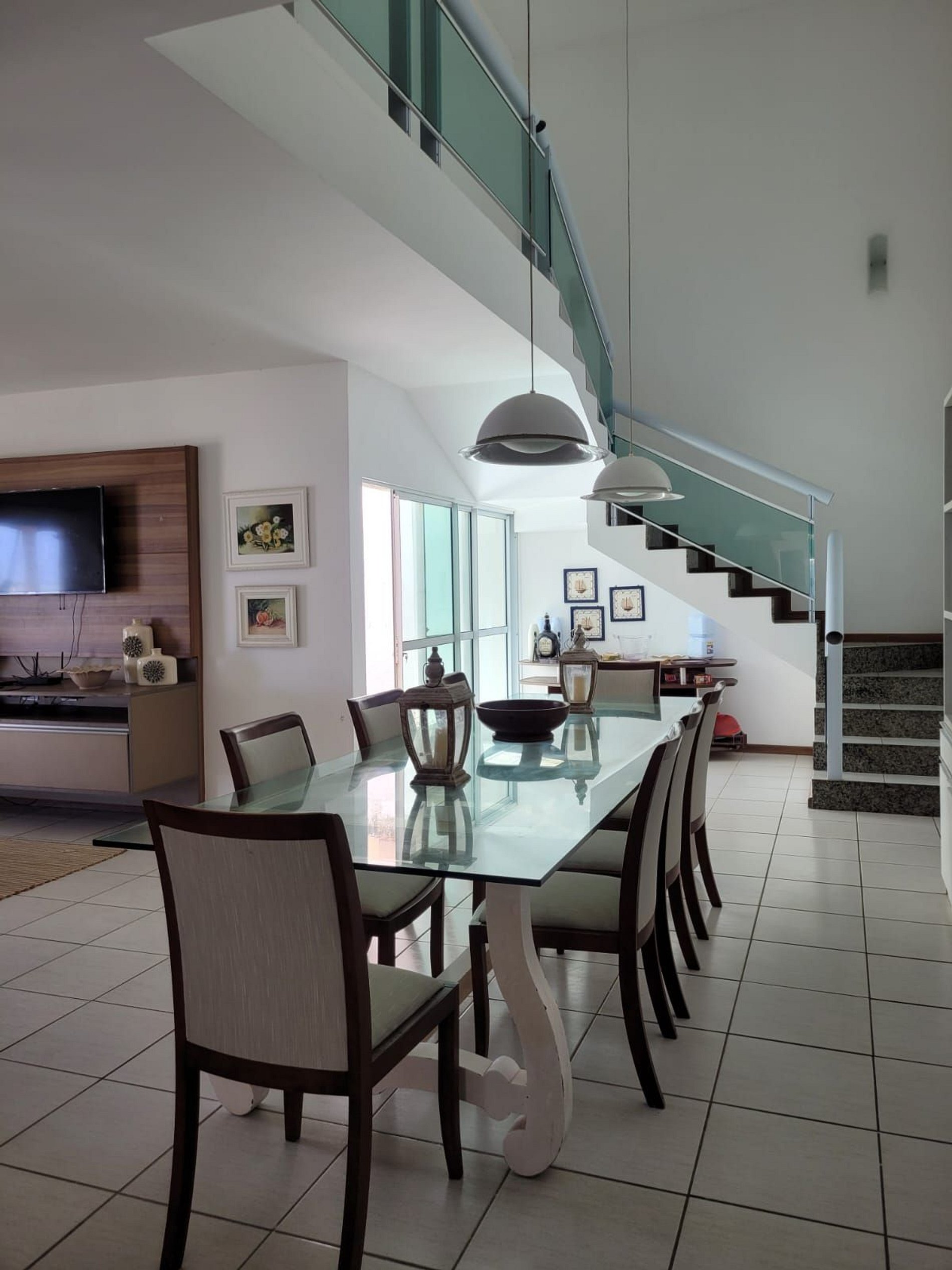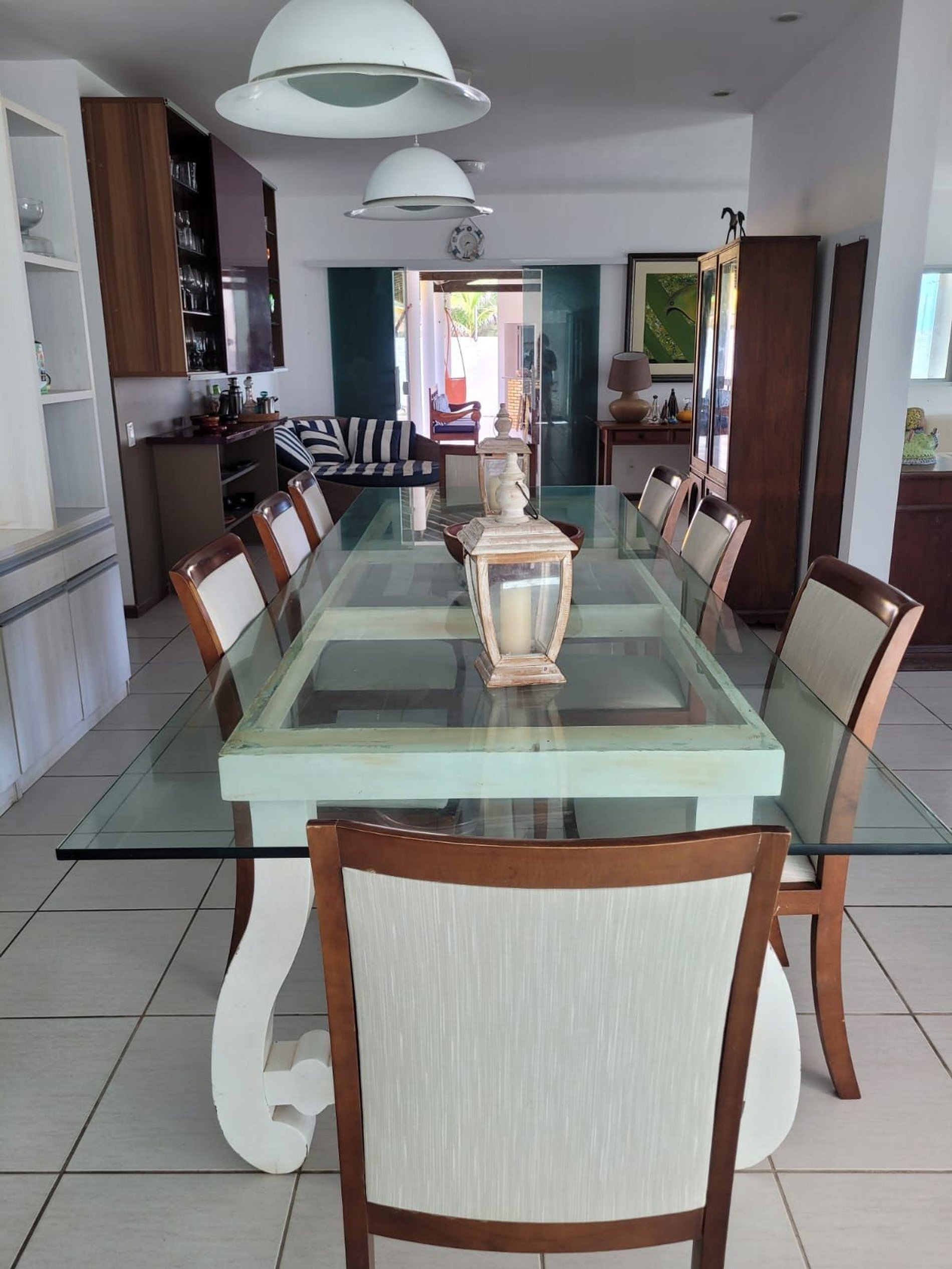 Casa à beira mar, em um terreno amplo, com piscina, churrasqueira, varanda espaçosa com espaços super agradáveis para momentos de interação e descanso. Ainda conta com cozinha completa e equipada e sala de estar com TV.