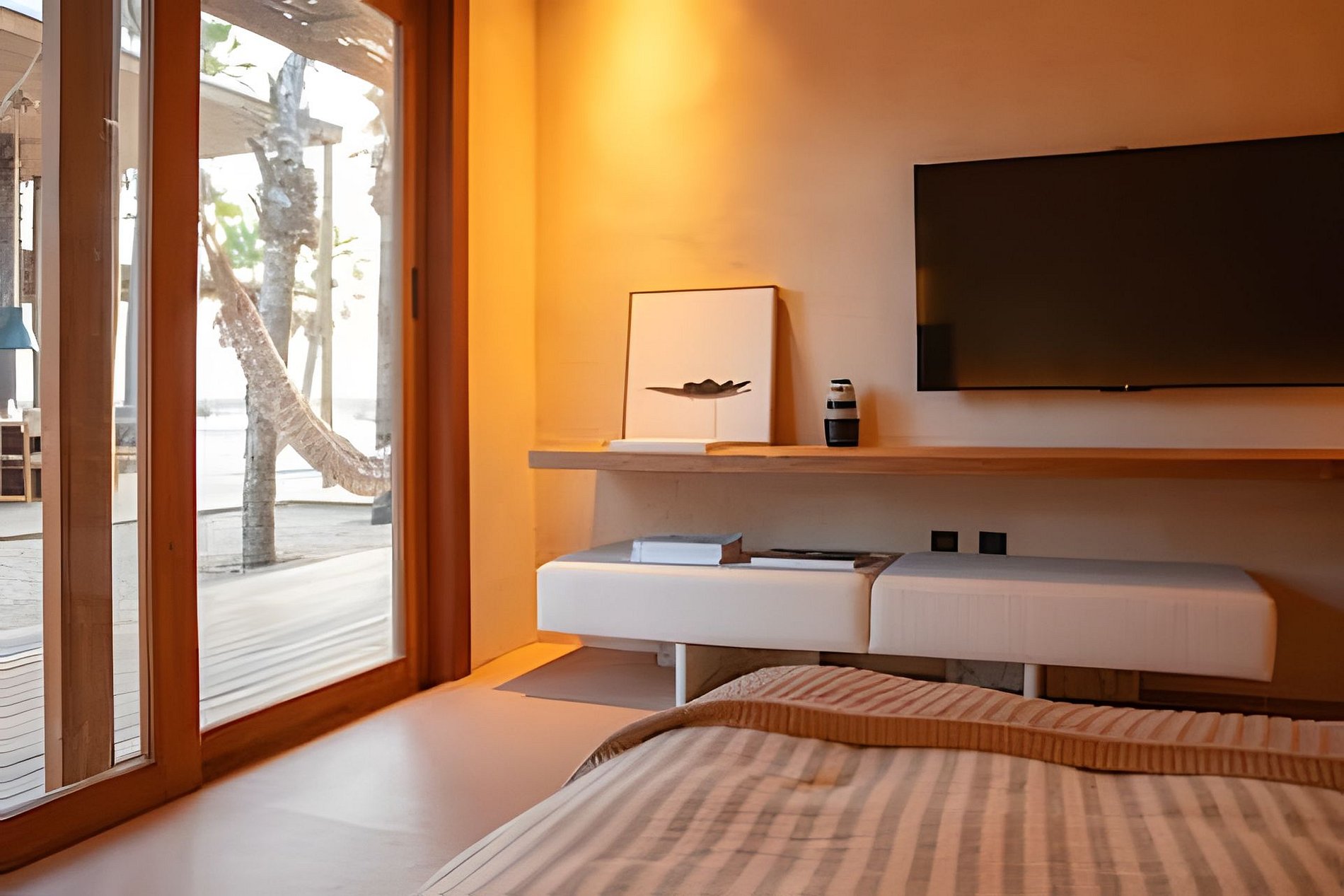 ▪️ Suíte 4 1 cama de casal King-size, telão e projetor, mesa de escritório e sofá